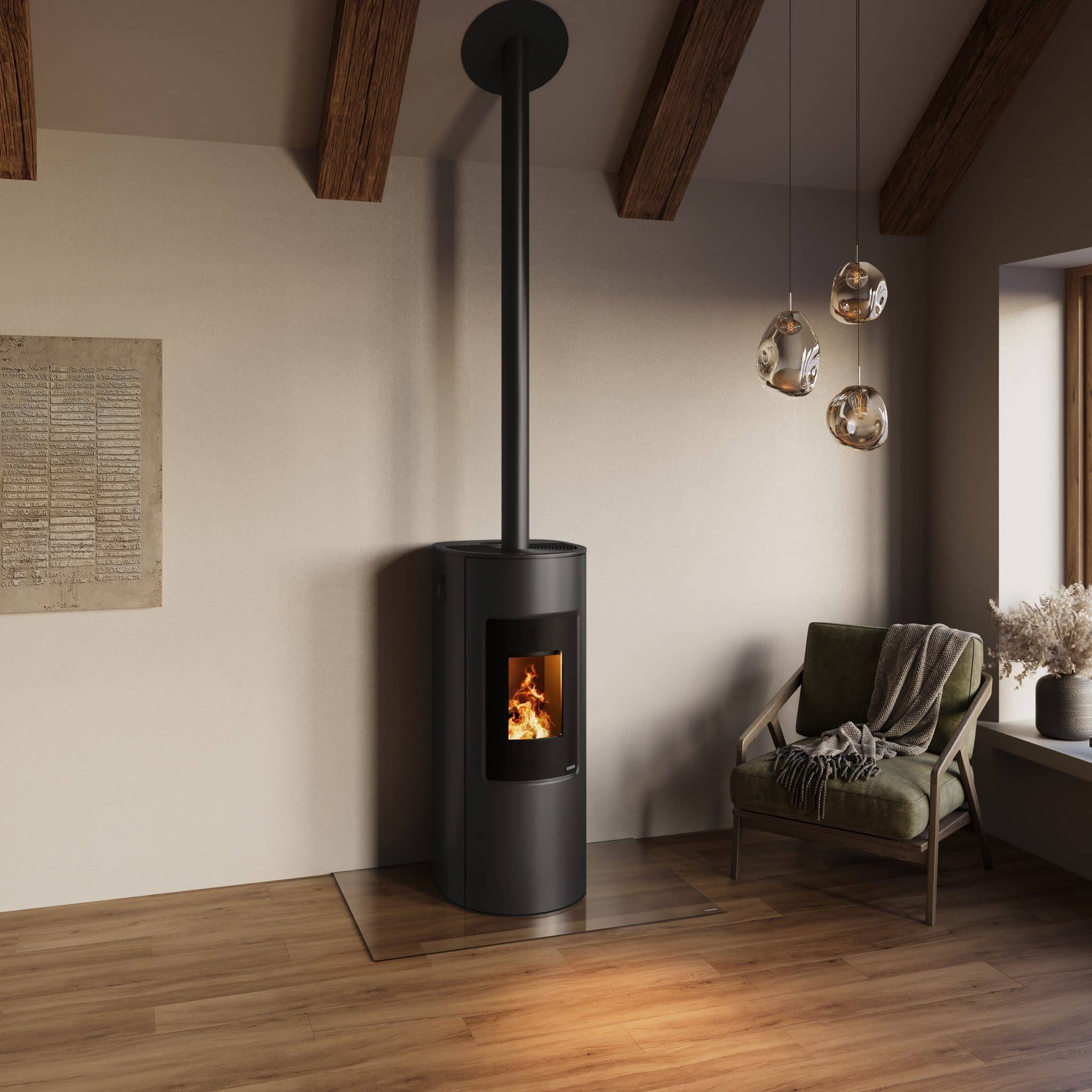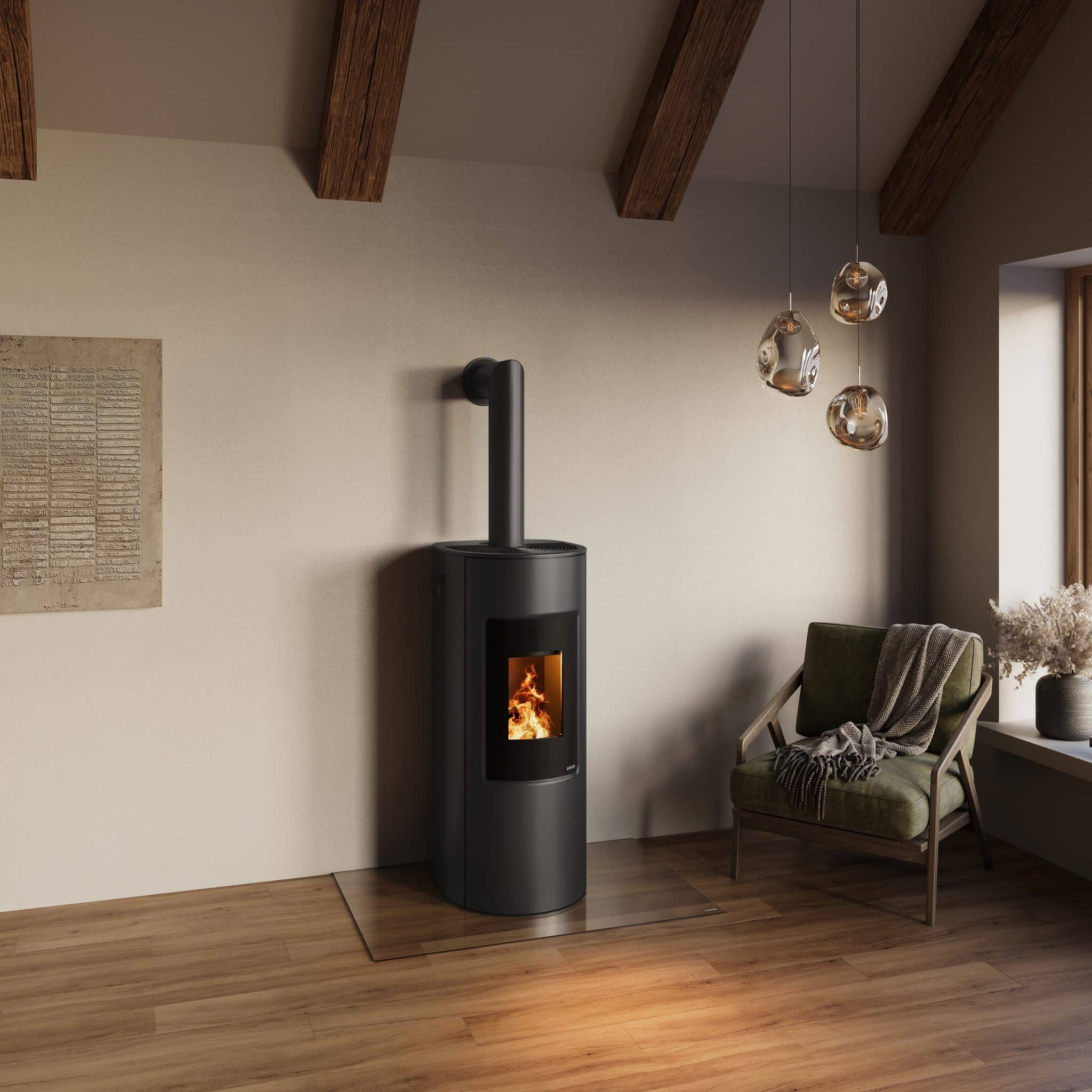 Automatic self-cleaning and ash removal reduce maintenance. The panel flushing system keeps windows clear, and the stove is easy to install or relocate.